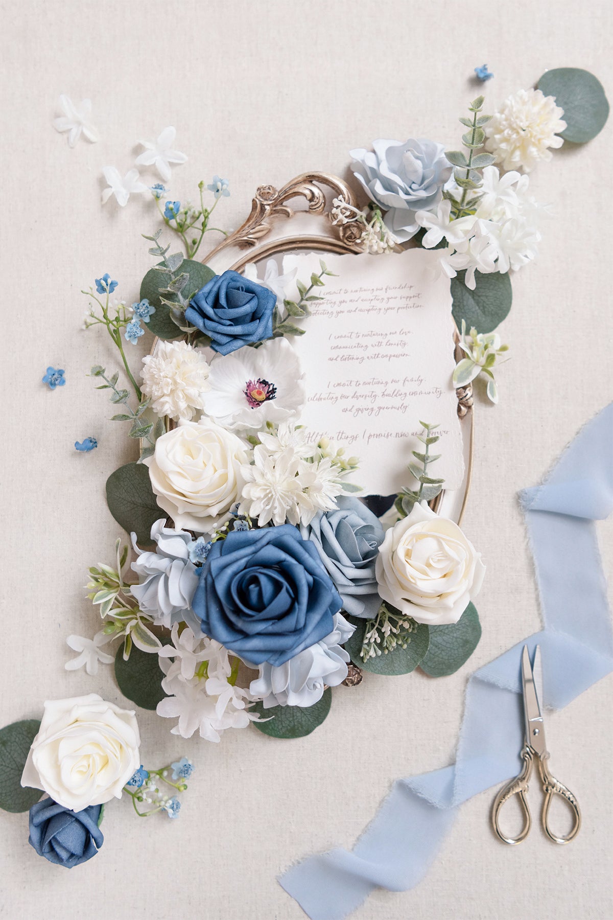 These flowers are so beautiful and realistic!!! They are so fun to arrange and I am so excited to use these on my wedding day. The best part is they don’t perish! I get to reuse them after the wedding as well. I truly love this company! I got backyard blue and demure blue! I would buy 10 more boxes if I could lol
