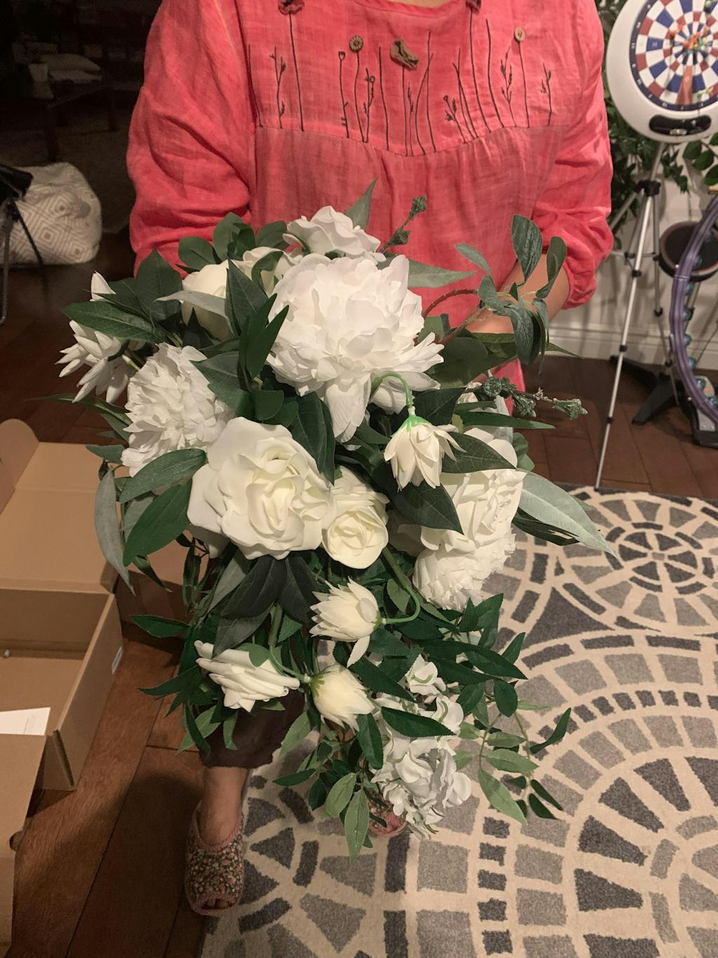 -Silk/foam flowers: peony, hydrangea, Vendela rose, Avalanche rose, carnation, camellia, wisteria.